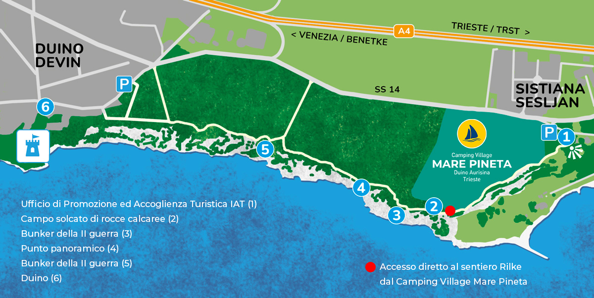The Duino Cliffs Nature Reserve, with its 107 hectares (around 1 square km), is characterized by a high biodiversity. This is due the extension along a strip of territory that includes both the Mediterranean and the typical European climate. It is a suitable habitat for the nesting of sedentary birds such as the herring gull, the imperial raven and the peregrine falcon, included in the list of animals in danger of extinction, which has found refuge in the more inaccessible than the cliffs.